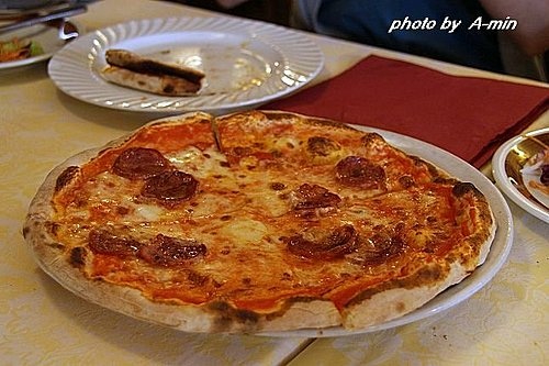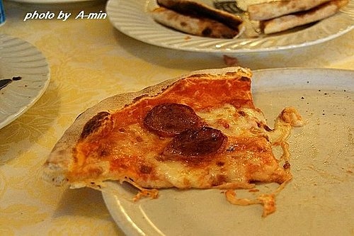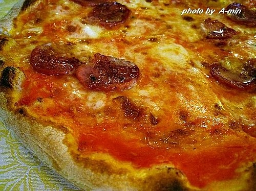 烤得香脆的餅皮加上香濃的起士.烤得微焦的義式香腸片..