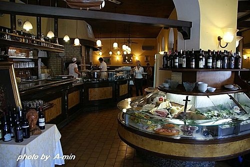 這是從門口前拍攝的. 前面右邊的是沙拉檯. 會點菜的客人可以在這邊選想吃的沙拉.配料也可以另選..