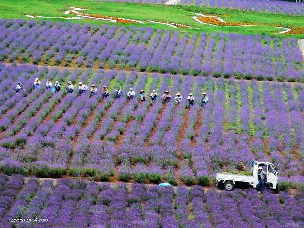 除了滿山坡的薰衣草.還可以飽覽富良野的田園景色.