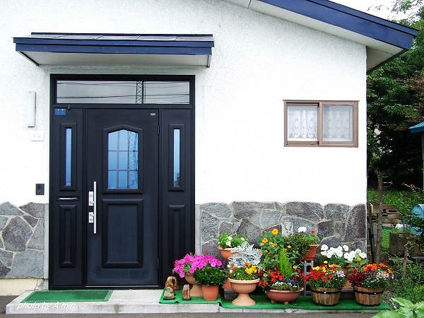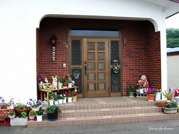 這一家.在門旁擺設了許多盆栽.妝點門面..