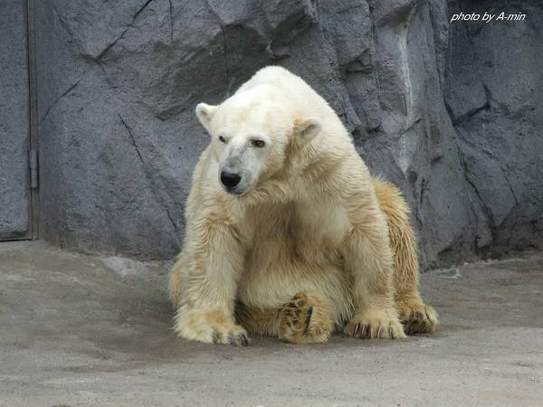 這一隻是接近成年的北極熊.跟已成年的公熊放在一起會有危險.