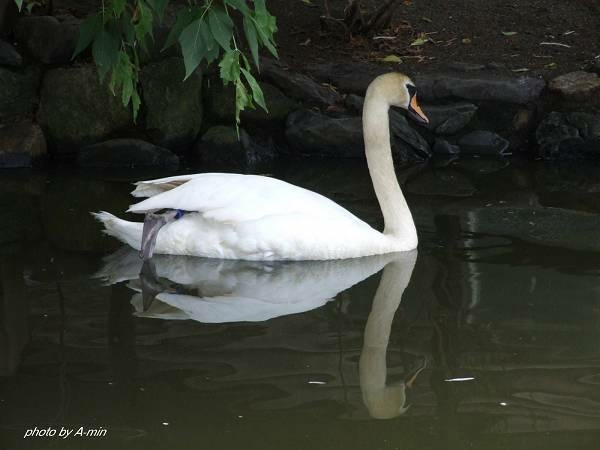 很優閒的白天鵝..連腳都翹到背上來了.. 只用一隻腳划水?
