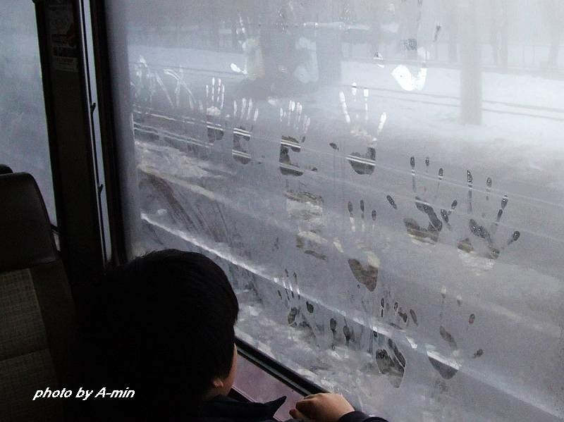 電車一到室外.. 由於內外溫差大. 車窗馬上節了一層霧氣..
