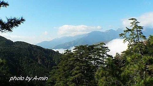從樹梢間隙眺望南湖大山.. 還有很遠的路要走....