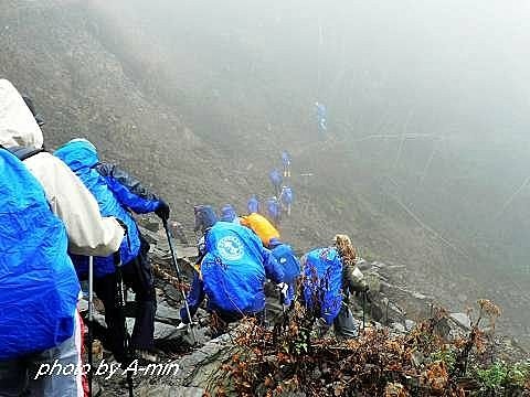 由於雲霧壟罩.. 只能看到前方約20公尺.. 感覺像是永無止境的下坡..