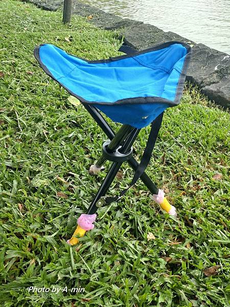 用塑鋼土把飲料瓶蓋黏在椅腳上.再包一層塑膠袋就好了.
