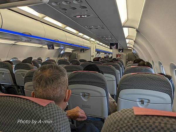 終於上了飛機.左右各3排座.沒有個人銀幕…