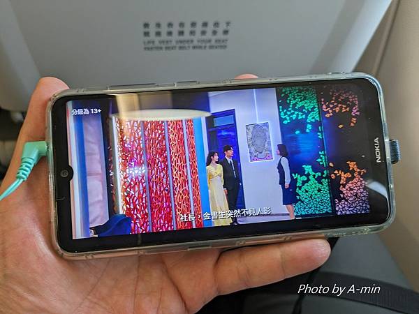 因為我的耳機放在行李架上背包裡.不好意思拿.