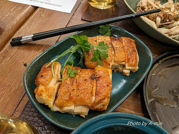 桌上兩道菜分別是:蓮藕雞肉絲涼拌、肉棒捲米紙