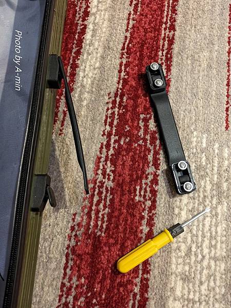 這次.下飛機提領行李時.從輸送帶上把行李箱拉下來.這側面把手也斷了.