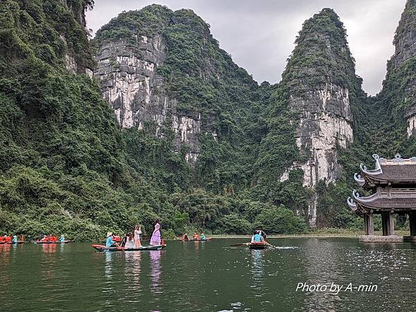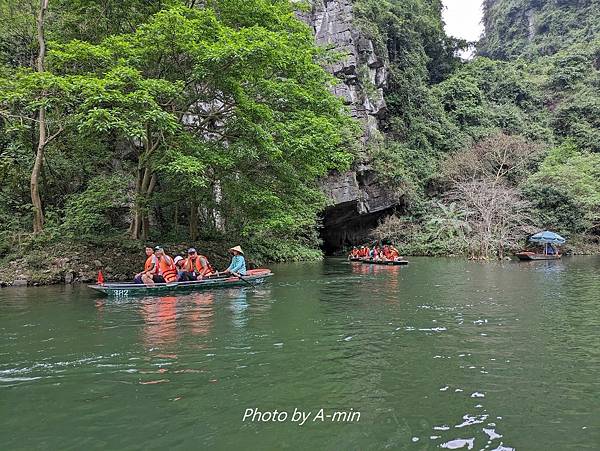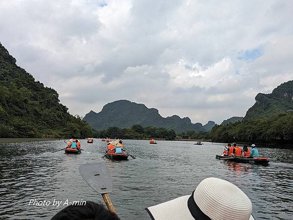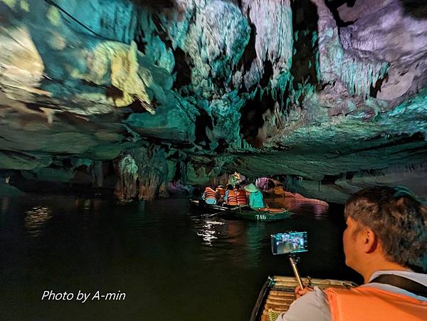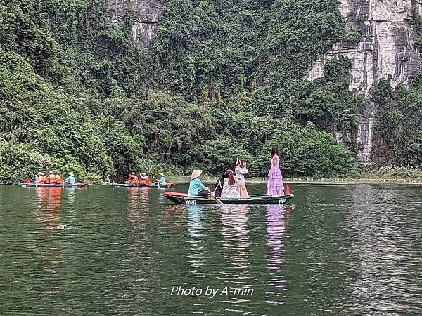 驚豔於眼前的風景大夥默默地拍照.伴隨著船夫的搖櫓聲.