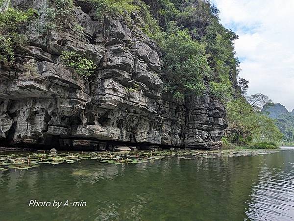 岩壁下長了許多睡蓮.可惜現在不是開花的時間.
