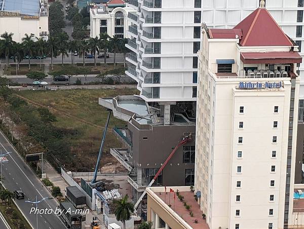 前面這棟將近完工的大樓造型很有趣.