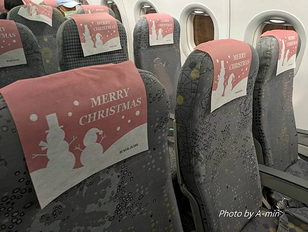 18:10上了飛機.發現椅背換成了耶誕節的紙墊了.
