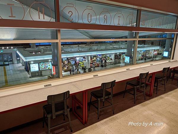 走廊上有桌面附插座的座位.佛心ㄟ!