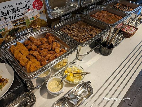 炸魚片、炸牡蠣、牛肉壽喜燒、熱狗、鹹鮭魚.
