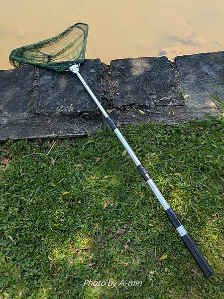 撈網連柄長110cm.整個人趴在岸邊伸長手臂還是搆不著.