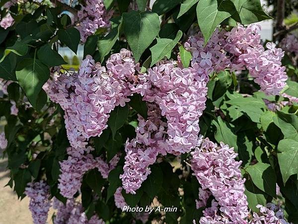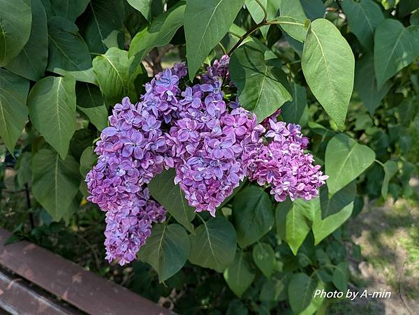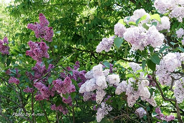 深紫色的紫丁香花和接近白色的粉紫色花.