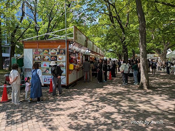 有各種小吃攤:燒肉、咖哩、漢堡、甜點、剉冰..