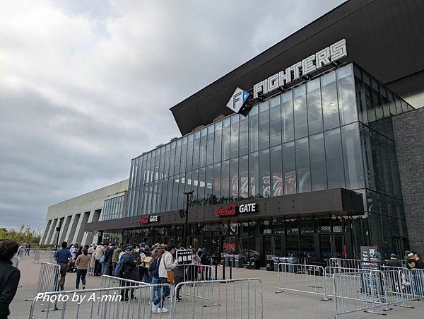 約10分鐘就到達球場.後面的接駁巴士一直開進來.