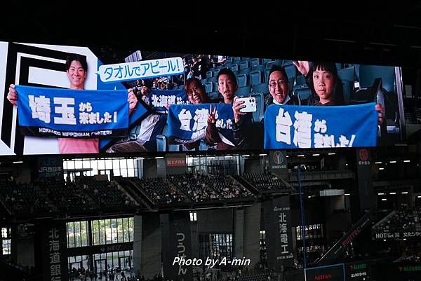 看板上攝影機開始找尋場上有舉「我來自00」應援巾的觀眾.