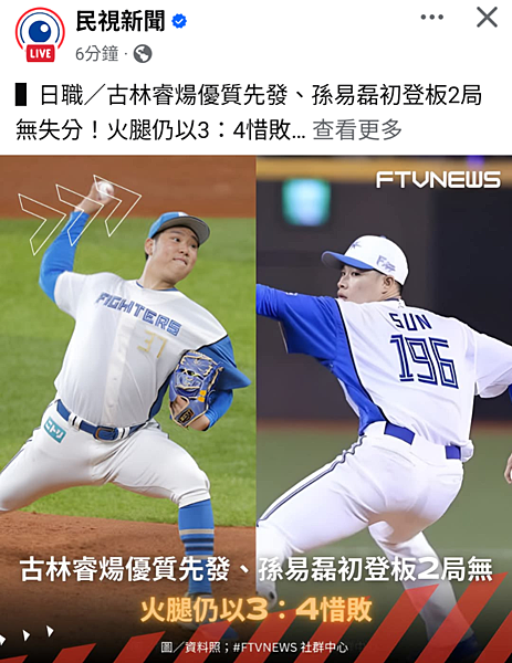 後來又有消息台灣選手孫易磊也升上火腿一軍.