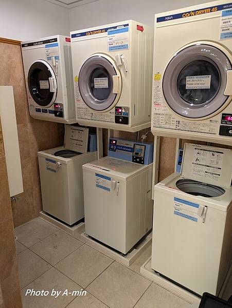 晚上把衣服拿到投幣式洗衣機洗一洗.