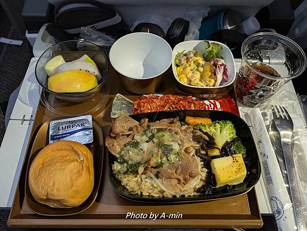 起飛後約一個鐘頭.空服員開始發餐點了.