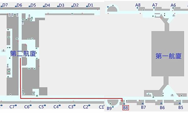 剛才在托運行李時.地勤小姐有提醒:這登機門(B8)很遠.