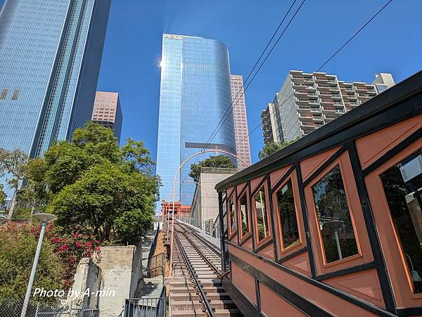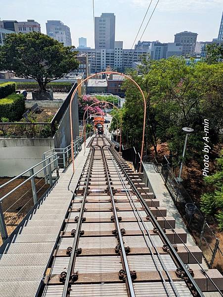 走到對面馬路.回頭拍天使鐵路和山上的高樓.