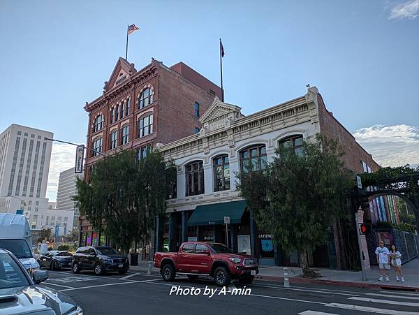對面是Peacock劇院、Novo音樂廳、葛萊美博物館組成的建築群.