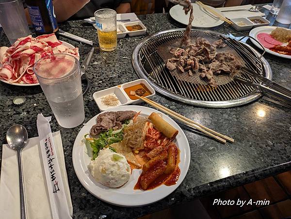 而且老闆娘很熱心地親自幫我們烤肉夾肉分肉.