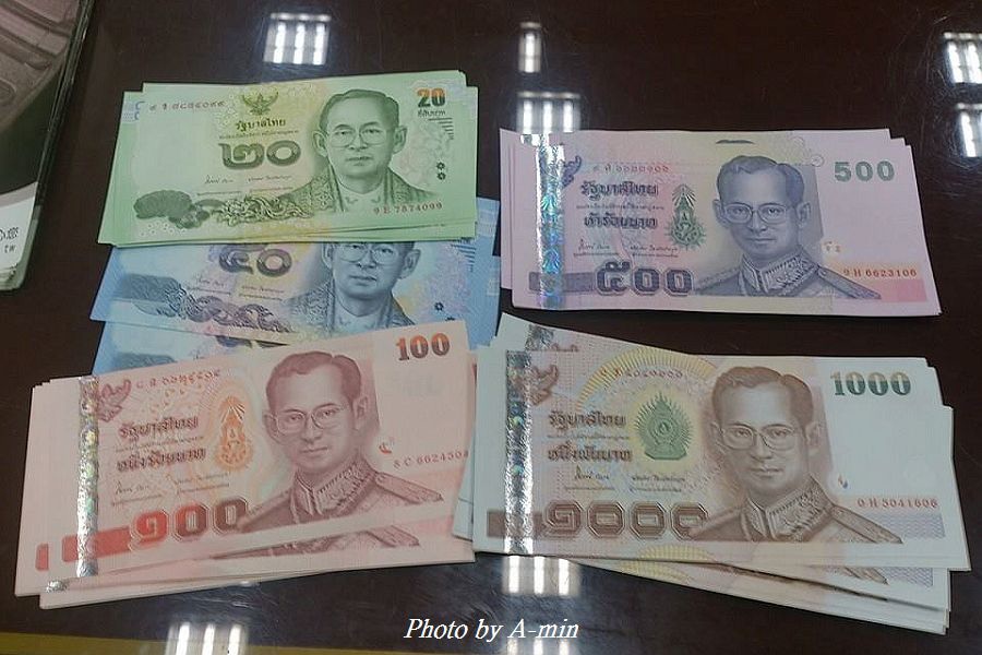 去松江路的泰國盤谷銀行換泰銖.. 以0.96 : 1的匯率換到了..