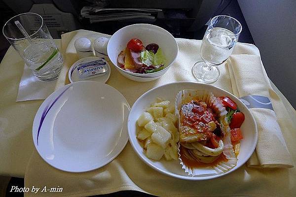 其實菜色應該和經濟艙應該是一樣. 裝瓷盤裡感覺就高級了~