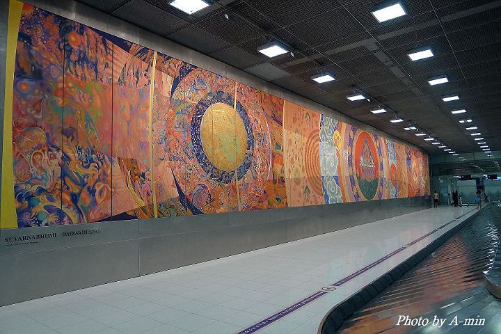 不愧是佛教大國..行李轉盤旁有大幅唐卡壁畫..