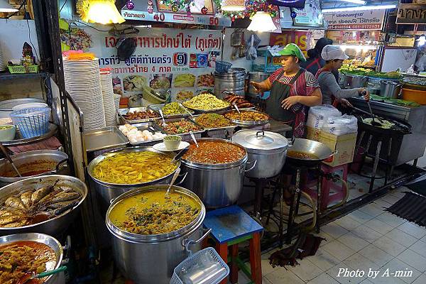 旁邊的熟食攤..跟台灣的自助餐有異曲同工之處~