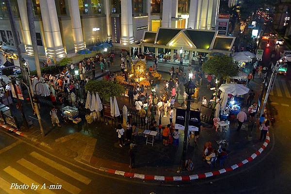 從天橋上俯瞰香火鼎盛的曼谷四面佛~