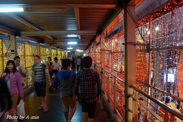 天橋上裝飾著大量的燈飾..好有耶誕氣氛說~