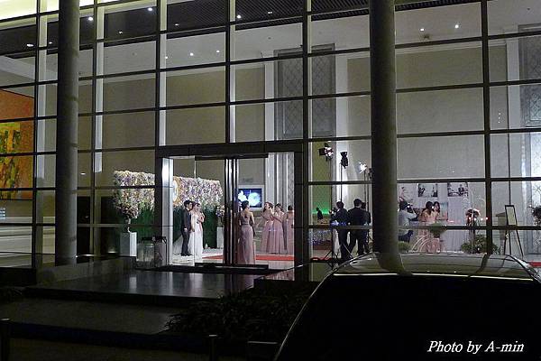 旅館的宴會廳喜宴剛送完客.剩下新人和伴娘們在合照..