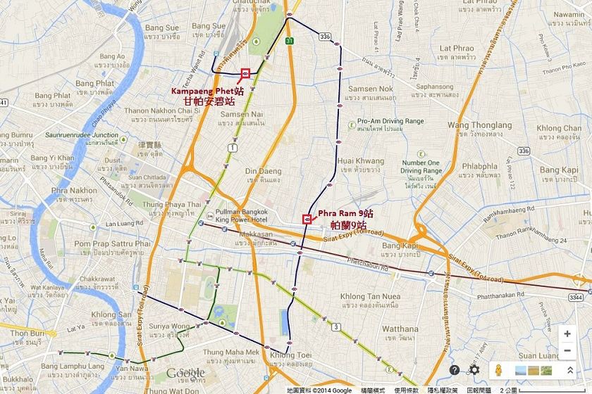 從這邊搭乘MRT到Phra Ram 9站再走個五分鐘就到了~