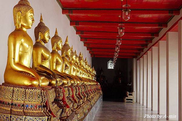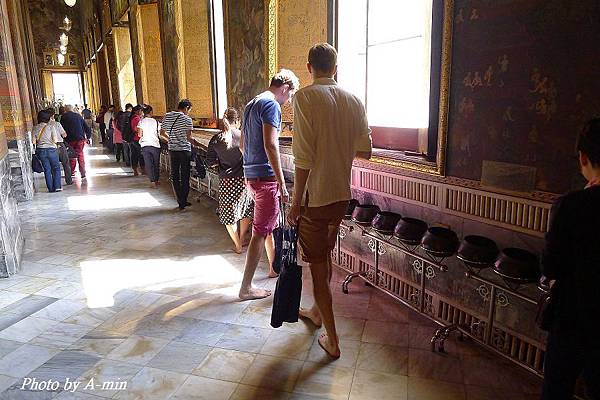 臥佛背後的走廊這邊.有許多小銅缽讓信徒投錢進去..