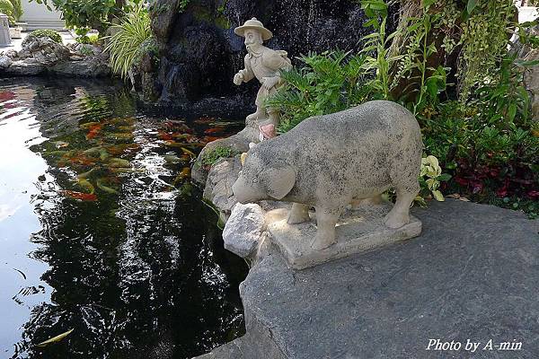 參觀過臥佛.在門口附近的水池旁稍坐一下..