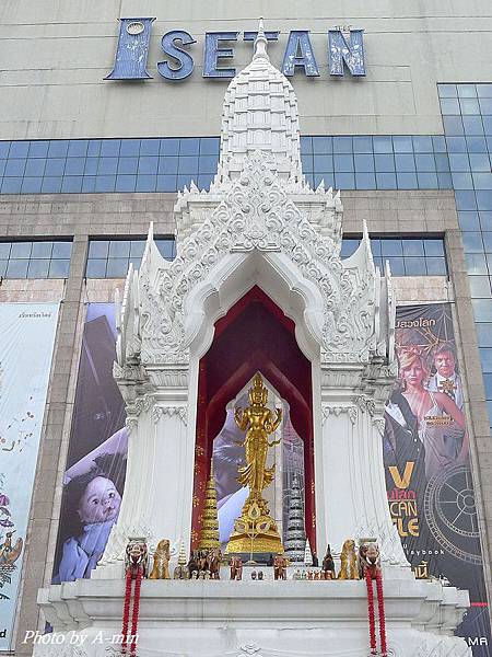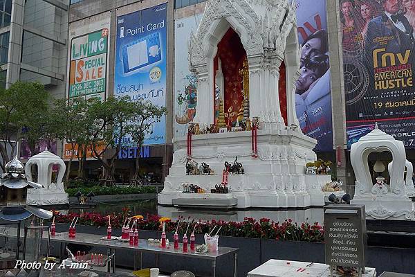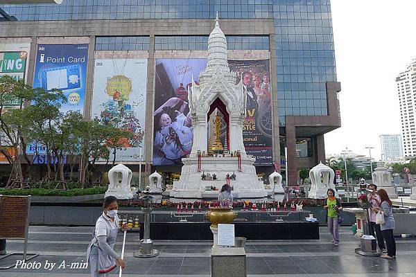 Central World旁的廣場上有兩座神壇..現場有信徒在參拜.也有打掃的人員.