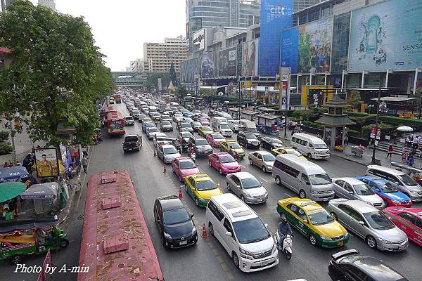 走在天橋上..看見拉差當梅路正在塞車..