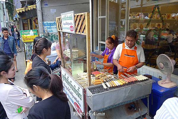 這邊一攤人很多.賣的是炭烤串..有好多種香腸.熱狗.魚丸..